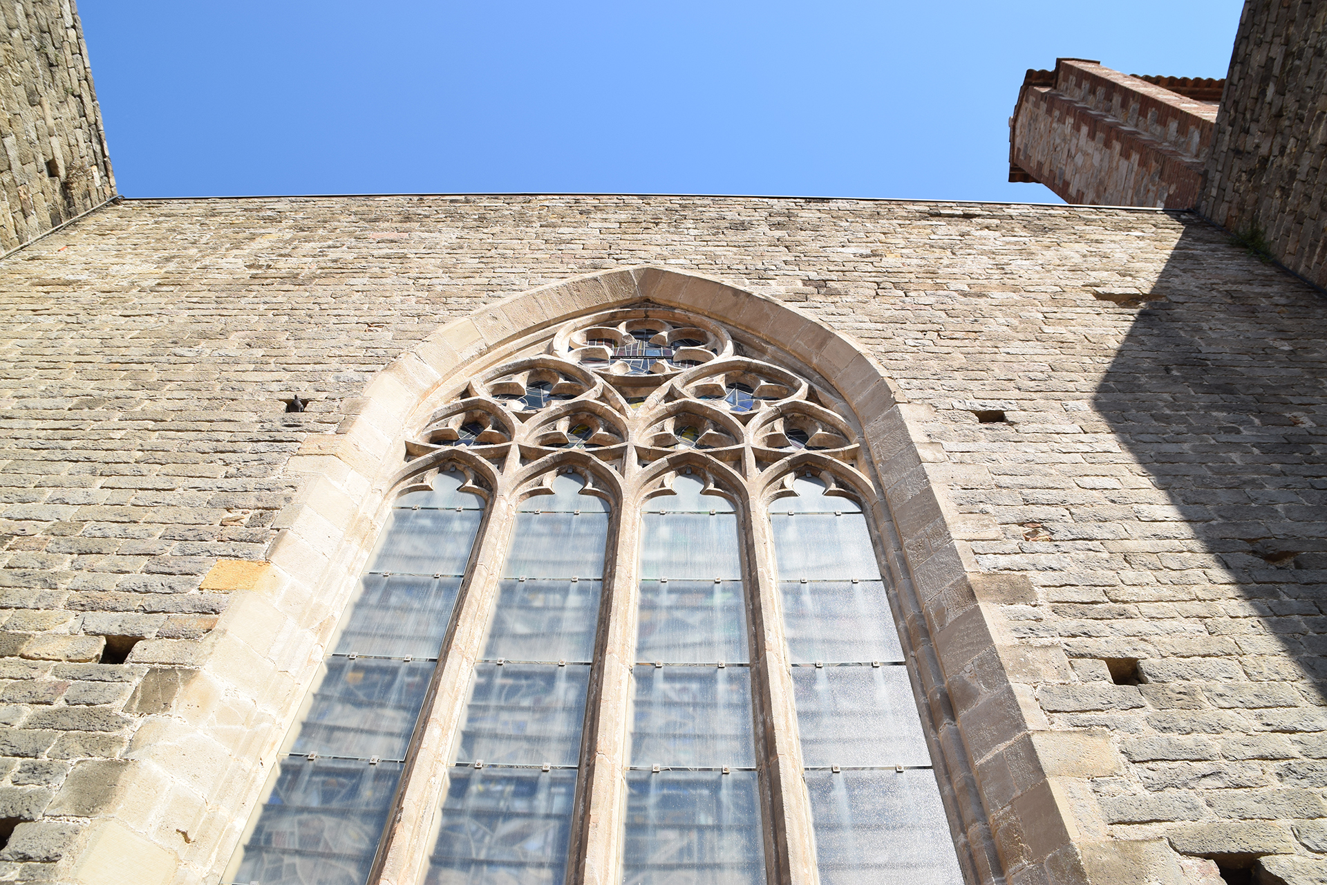 La restauración de la fachada Noroeste ha contemplado el derribo de una parte del edificio que se encontraba adosado al ábside en un estado de avanzado deterioro.